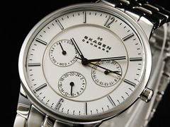 2004年に開催された世界最大の時計博「バーゼルフェアー」において、創設わずか10数年のSKAGEN DESIGNSは腕時計ブランドとして世界第10位の知名度を獲得する快挙を成し遂げました。 スカーゲンのメインラインナップでもあるultra slimは約6mmとう薄さを実現しました。その薄さは腕に身につけた事を忘れてしまうほどです。そして波を思わせるような柔らかなラインを生み出すバンドは腕にしっかりとフィットしアクセサリーとしてファッションを選びません。