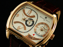 本モデルは、通常の文字盤とは別に、第三時間帯まで表示可能なスペシャルウォッチ。